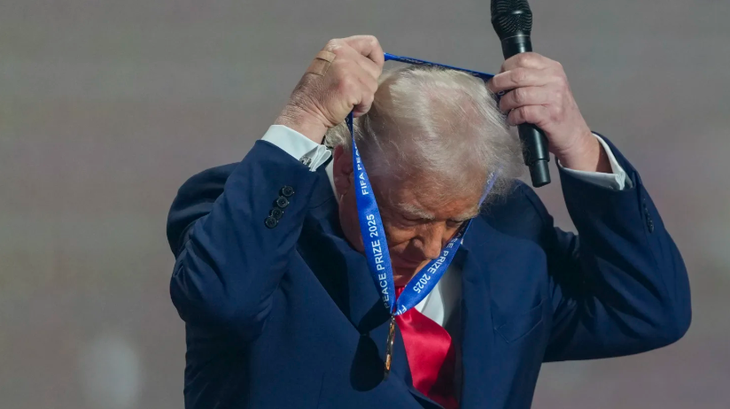 Trump, who has campaigned aggressively this year for a Nobel Peace Prize, was given FIFA’s inaugural peace prize for his efforts to promote dialogue and de-escalation in some of the world’s biggest hotspots.